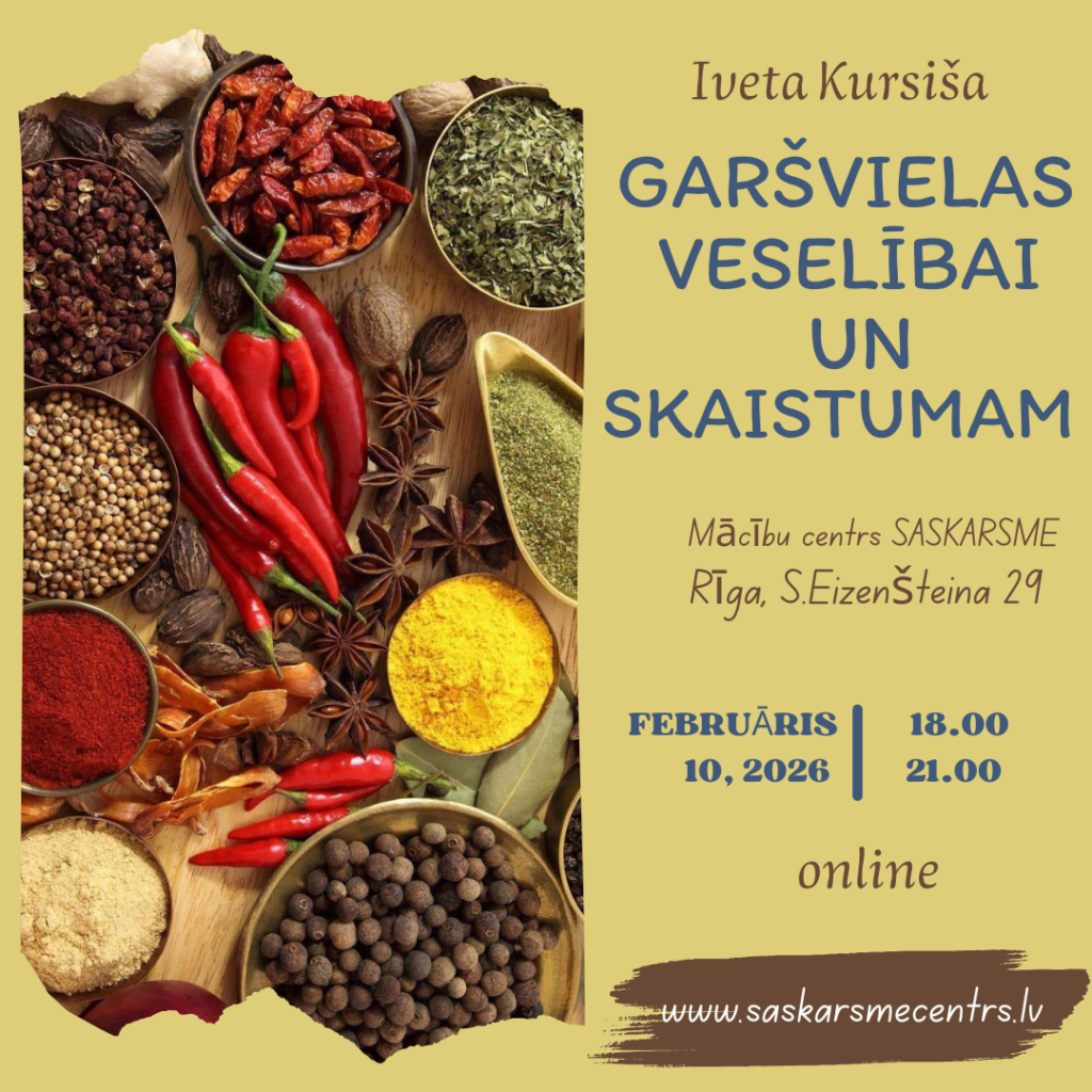 Vairāk informācijas: https://saskarsmecentrs.lv/26-11-2025-online-kurss-garsvielas-veselibai-un-skaistumam/#more-10301