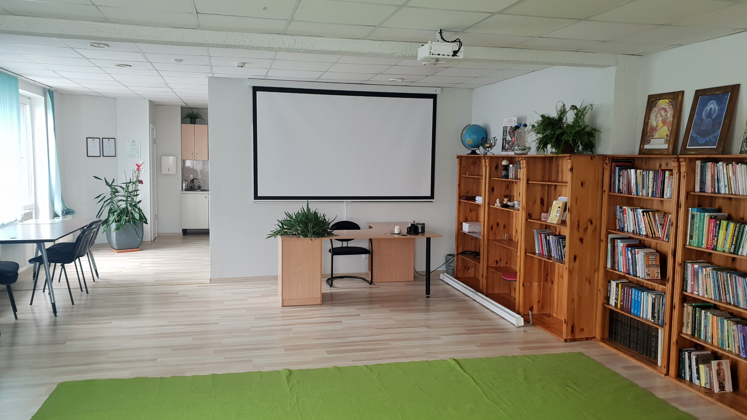 Telpas piemērotas individuālām konsultācijām, pārrunām, semināriem, prezentācijām, lekcijām, jogas nodarbībām un kursiem līdz 40 personām. Ir pieejamas divas auditorijas.